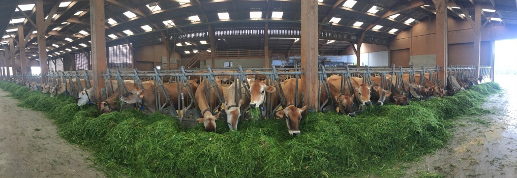Les vaches Gaborit broutent dans des champs bio, conformes aux normes les plus strictes. Leur 9 à 5 se vit au vent. En revenant au bâtiment pour la nuit, elles se régalent d’herbe fraîchement coupée. Leur salade composée est étudiée, variée. On vient d’y ajouter de la chicorée, pour la bonifier.